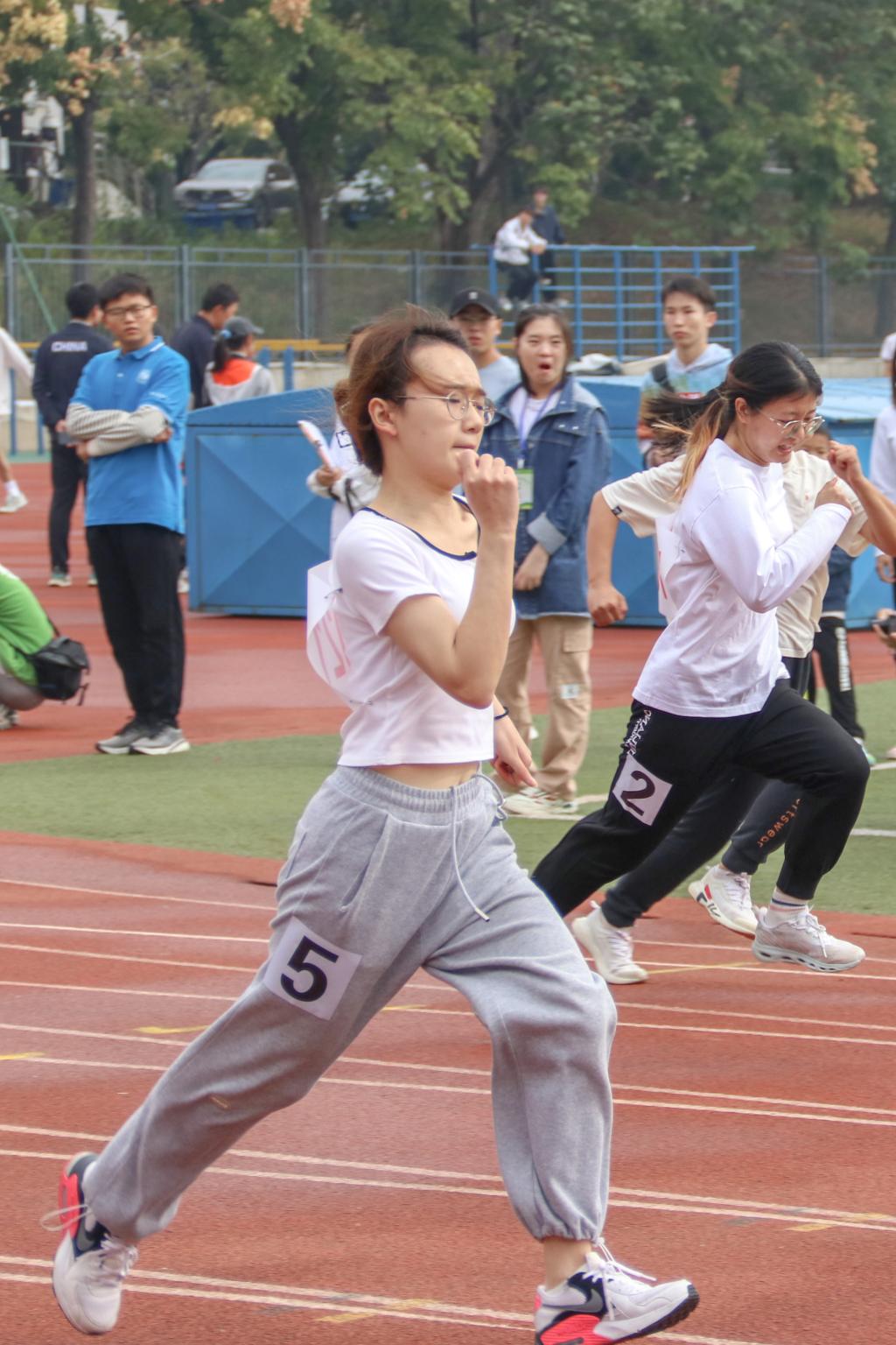 今年罗思宇同学又多了一重身份是——女子组100m的参赛者。虽然这此参赛没有取得名次,但是罗思宇秉持着体育精神在于参与,弘扬体育精神。罗思宇在采访中提到,在运动赛场上自由驰骋,挥洒豪迈的感觉赋予了紧张的学习生活短暂的松弛,这更有益于接下来以更好的状态投入到后续的学习工作中。