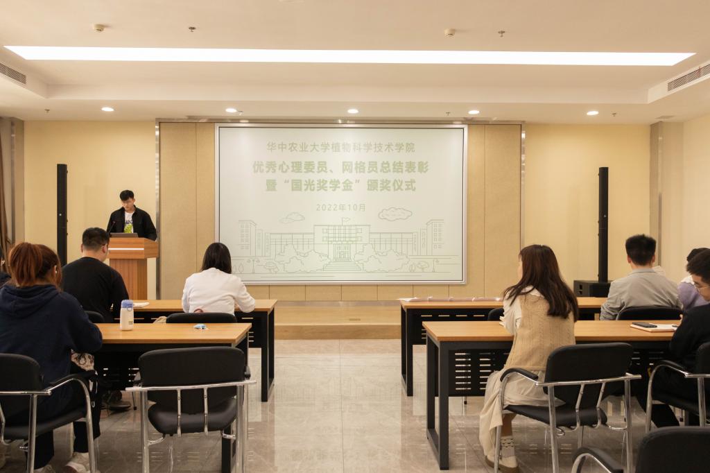 10月12日中午,植科院2021-2022年度优秀心委总结表彰大会暨国光奖学金颁奖仪式于三综A705会议室举行。学校心理健康教育中心崔凤华,植科院党委副书记孙超、本科生辅导员明淇及研究生辅导员任伟出席大会。