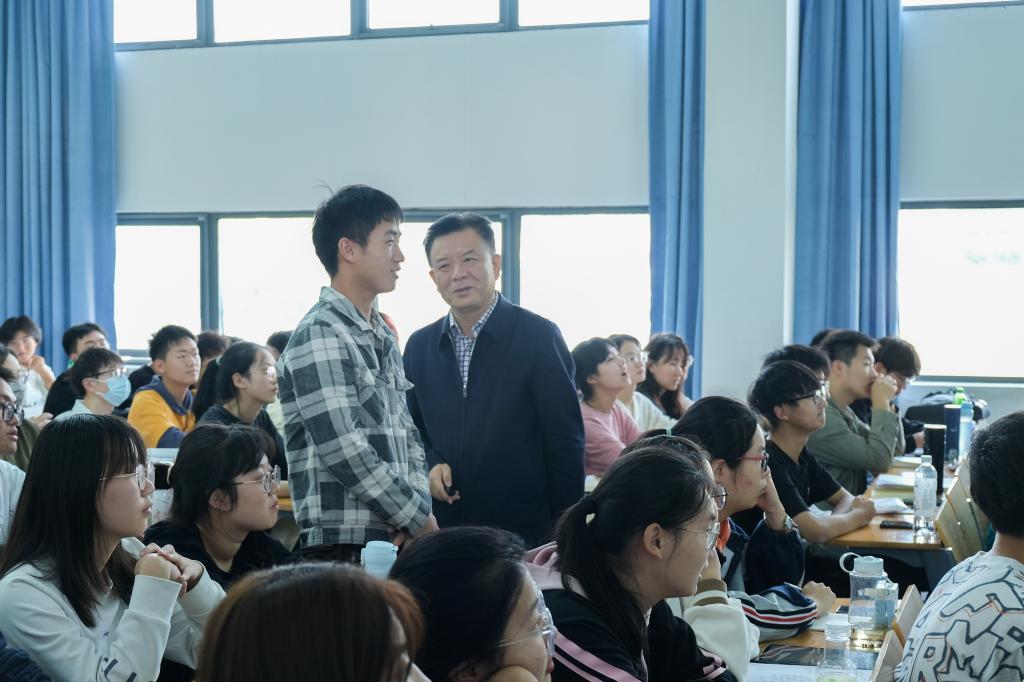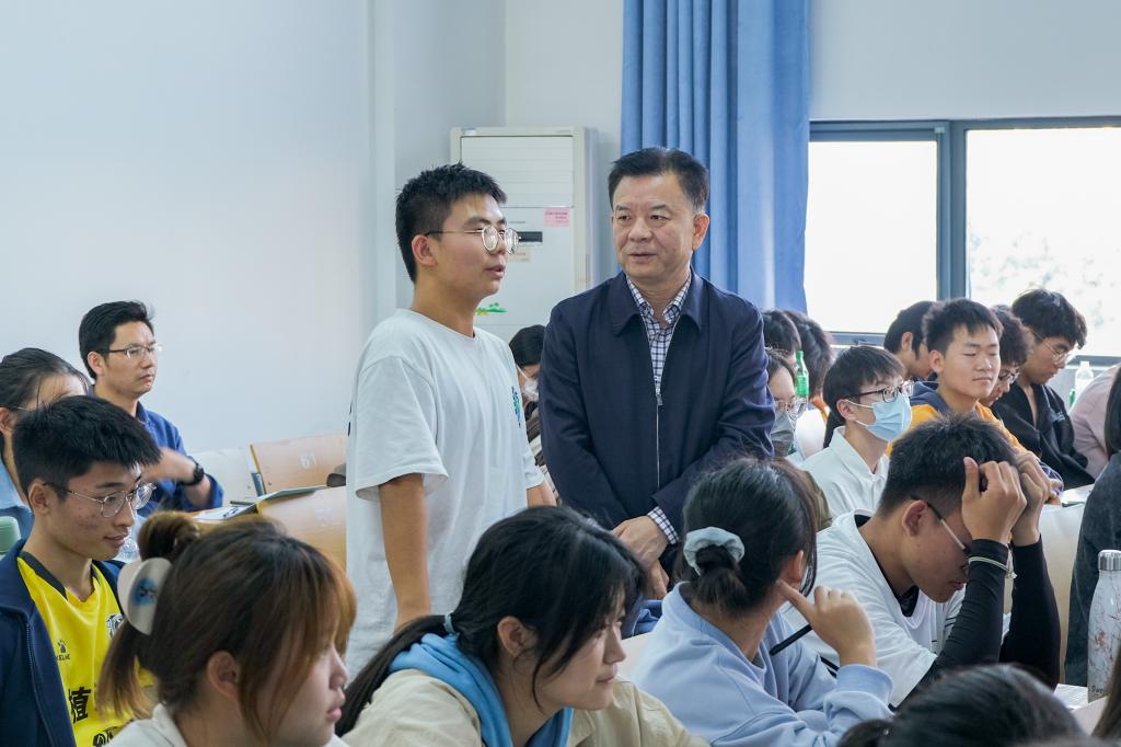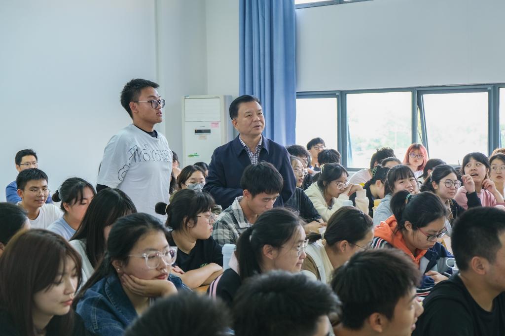 最后,姚江林介绍了张启发院士、傅廷栋院士、邓秀新院士等科学家科研报国故事。他借此向同学们提问“作为新时代的华农学子,应该如何为国家粮食安全做出自己的贡献?”“理论和实践相结合。”来自植生2202班的游宇回答道,“扎实学好专业知识的同时,借助学院‘三田三早实践平台,将所学知识运用到实践中,真正做到把论文写在大地上。”