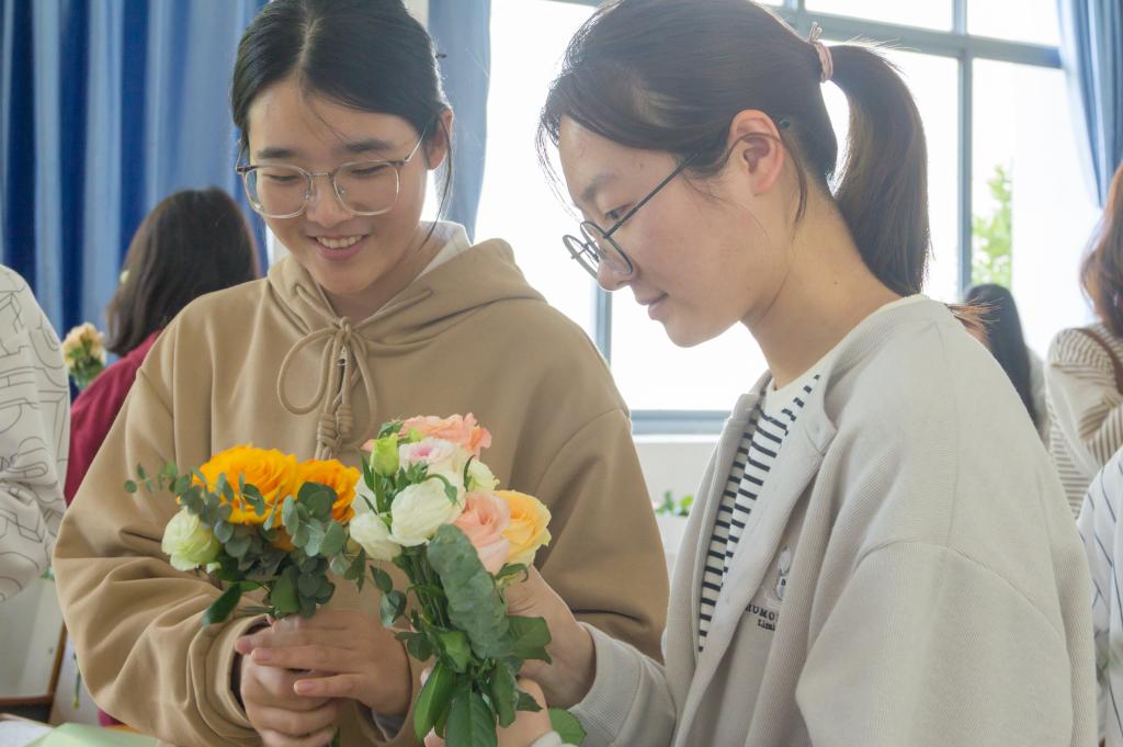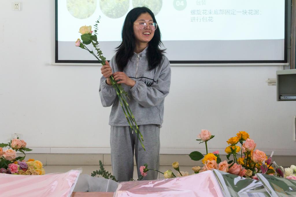 与此同时,在植科院邀请下,由园林院主办的“春色如约,指尖意境” 主题插花活动在三教A102教室如火如荼的进行。“春来人间久矣,花已漫遍山野”,在大家充分了解了插花的基本种类、基本原则以及操作的安全规范后,同学们便一头扎进花的海洋,用他们灵巧的双手为花朵编织衣裳,打造专属自己的作品。“本次活动不仅陶冶了同学们的情操,也让我们收获了丰富的插花技巧,提升了艺术审美情趣。”智农2202班罗庭汉活动后表示。
