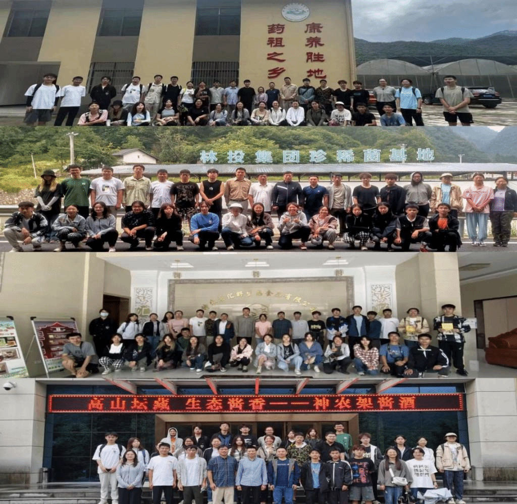除采集资源外,本次实习还参观了神农架林区中医药产业研究院、林投集团珍稀菌基地、神农架汇野生态食品有限公司、神农架生态酒业有限公司四家企业。在神农架林区中医药产业研究院,参观了部分中草药种植大棚和中草药观赏园,并且聆听了舒少华老师对大棚中白及、黄精、淫羊藿等中草药的药用功能、种植技术发展和栽培特点,让同学们对于中草药研究方向有了进一步了解。在林投集团珍稀菌基地,参观了猴头菇、鸡冠菌、灵芝等等珍稀菌的种植生产车间、珍稀菌的低温保存车间和包装车间,以及在他们基地品尝了菌子汤的美味,并由龚钰华老师详细地介绍了各种食药用菌的作用和形态特点。在神农架汇野生态食品有限公司,参观了百花蜜和汇野公司发展史、百花蜜系列产品和土特产展览厅、百花蜜制作原始工具和现代工具等等,并品尝了百花蜜的美味和了解百花蜜制作的不易与珍贵。在神农架生态酒业有限公司四家企业,参观了酿造车间和神农藏酒阁,品尝了神农酱酒,了解了该公司的发展历史和荣誉,从工作人员收获了对于酒业行业相关疑惑的答案。