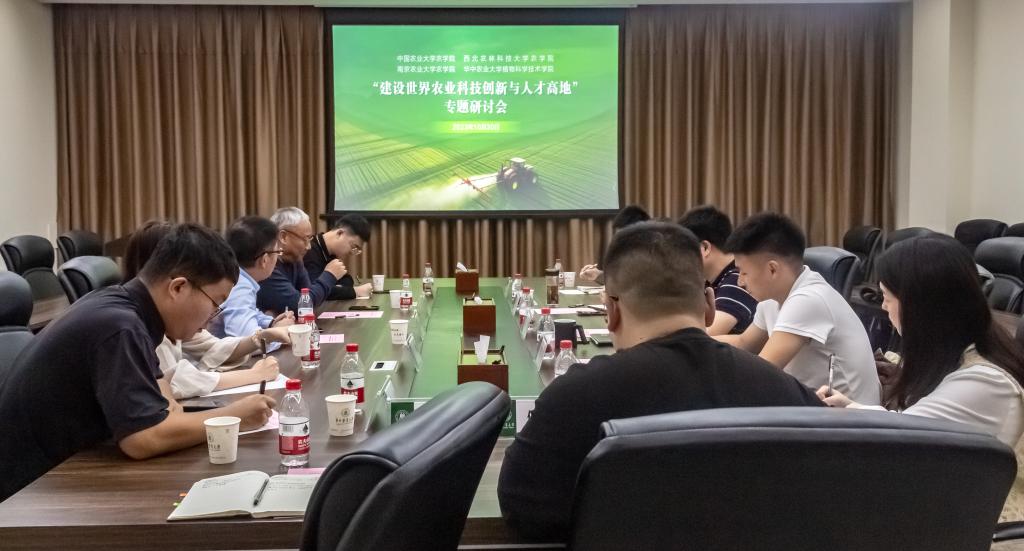 10月30日下午,中国农业大学、西北农林科技大学、南京农业大学及我校农学(植科院党委联合以“建设世界农业科技创新与人才高地”为主题在三综308会议室开展研讨,四农学(植科)院党委书记参会