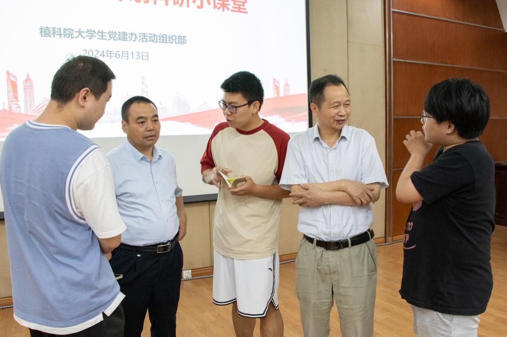 黄俊斌就“红色三助是什么“的问题与同学们交流。他谈到,“红色三助”活动是学院植保教工党支部的特色活动,注重助学、助研、助发展,通过党员教授与学生结对帮扶,帮助学生提前参与到科学研究中来。“同学们要提前做好人生规划,与红色三助优秀的学长学姐积极交流,不断进步、追求卓越”,他鼓励与会同学要积极地参与“红色三助”活动,在师生交流、朋辈交流中找到科研兴趣、人生志趣。
