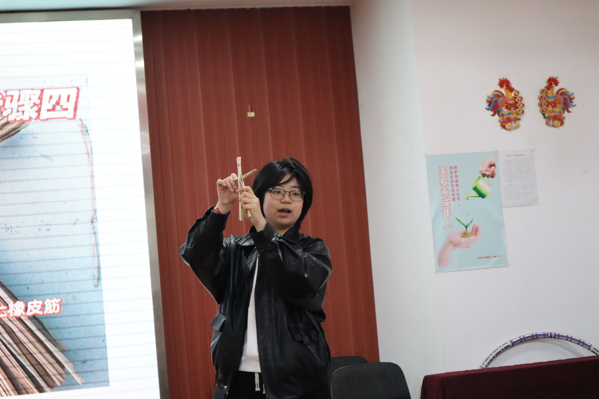裁剪、捆扎、装饰……制作稻草人时,志愿者欧阳怡宁正指导孩子们用稻草编织文化记忆。“我要给守护者戴上草帽,和爷爷田里的一样!”“我要做一个哪吒稻草人!”孩子们天马行空的创意与传统技艺碰撞,零散稻草逐渐变成憨态可掬的守护者。家长李女士感慨道:“孩子编稻草人时背《悯农》,这种浸润式教育比说教更动人。”