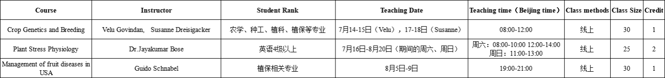 为提升我校学生的国际交流能力,开拓学术视野,强化英语综合应用水平,2025年暑假期间,植科院面向我校本科生开设了3门全英文课程,现就选课事宜通知如下: