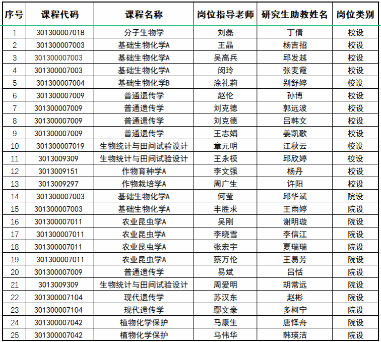 根据《英国365集团研究生“三助一辅”实施办法》的通知(校发{2023}157号)文件精神,经个人申请与课程主讲教师推荐,学院结合岗位需求对申请材料进行审核,拟聘用以下本科生课程研究生助教同学,现将名单公示如下:
