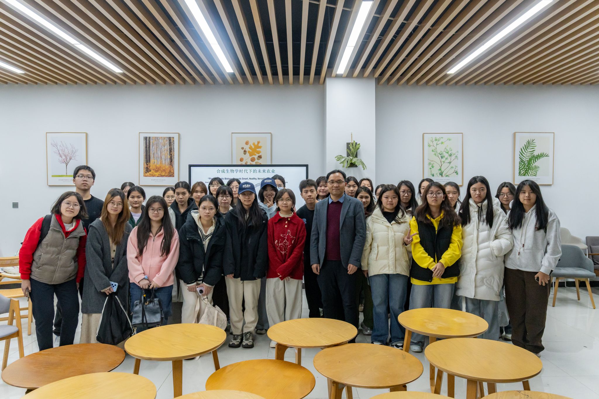 在未来农业创新应用展望环节,吴高兵聚焦AI与合成生物学融合赋能的核心方向,详细解读smart plants等四大研究维度,结合农业发展实际需求,阐释技术落地的实践路径。他指出,AI与合成生物学的深度融合是推动农业高质量发展的关键动能,未来将重点深耕分子农业、抗逆作物培育、太空农业等新兴领域,以技术突破破解农业生产难题,为加快推进农业强国建设、培育农业新质生产力注入核心科技力量。讲座尾声,吴高兵向青年学子送上科研寄语:“相信自己,保持好奇,打好基础,善于合作,你就是美好未来的设计者和创造者!”,传递科研热忱与前行力量。