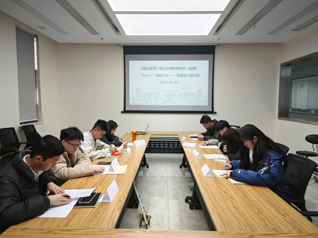 植科院兼职辅导员(助管)“九个一”训练营第十期以无领导小组讨论的形式在三综B308开展,8名兼职辅导员经过材料阅读、个人观点陈述、自由讨论、总结陈词四个环节,对典型案例展开激烈讨论。在此次讨论过程中,全体成员紧紧围绕讨论题目,深入思考、阐述观点、热烈讨论,逐渐从“观点纷呈”到“达成共识”,并推选产生本组的发言代表作总结陈词。