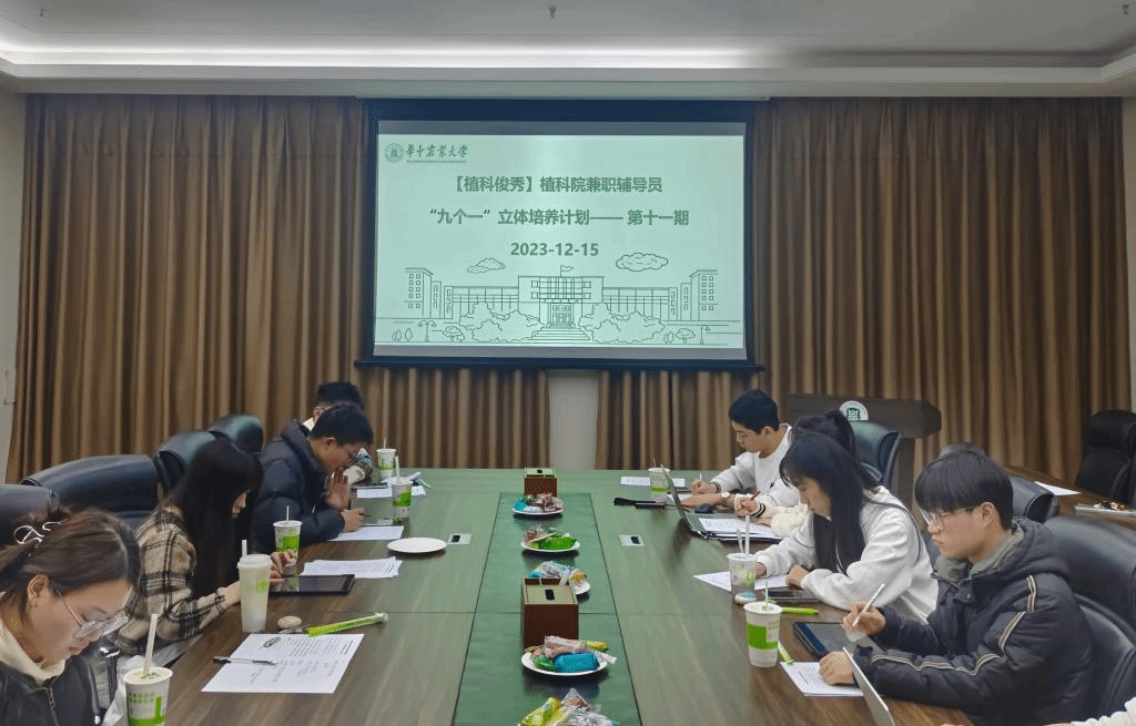 12月15日晚上,植科院兼职辅导员“九个一”立体培养计划第十一期于三综B308顺利举行。动科动医学院研究生辅导员马雨欣、园艺林学学院研究生辅导员陈炫希、植科院研究生辅导员任伟、文法学院研究生学生骨干出席此次培训。