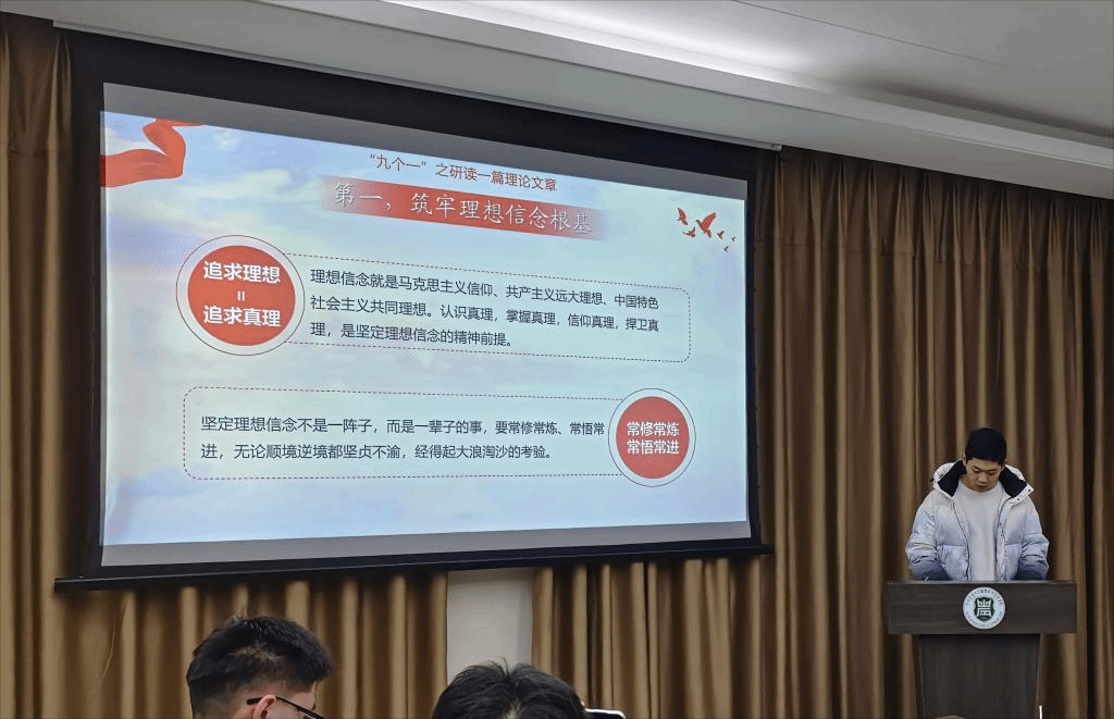 安家祥就《求是》(2023年第13期)杂志文章——努力成长为对党和人民忠诚可靠、堪当时代重任的栋梁之才,从基本内涵、理论内核和心得体会三个方面展开理论学习汇报。他表示:我们这一代人,重任在身,于人生定向之时,当立鸿鹄之志。正如习近平总书记说的,我们生逢盛世当有为。不忘初心使命,立牢为国为民之志。我们要以学为勤,保持无止境的学习状态。勇于担当,增强“文经我手无差错,事交我办请放心”的责任感。