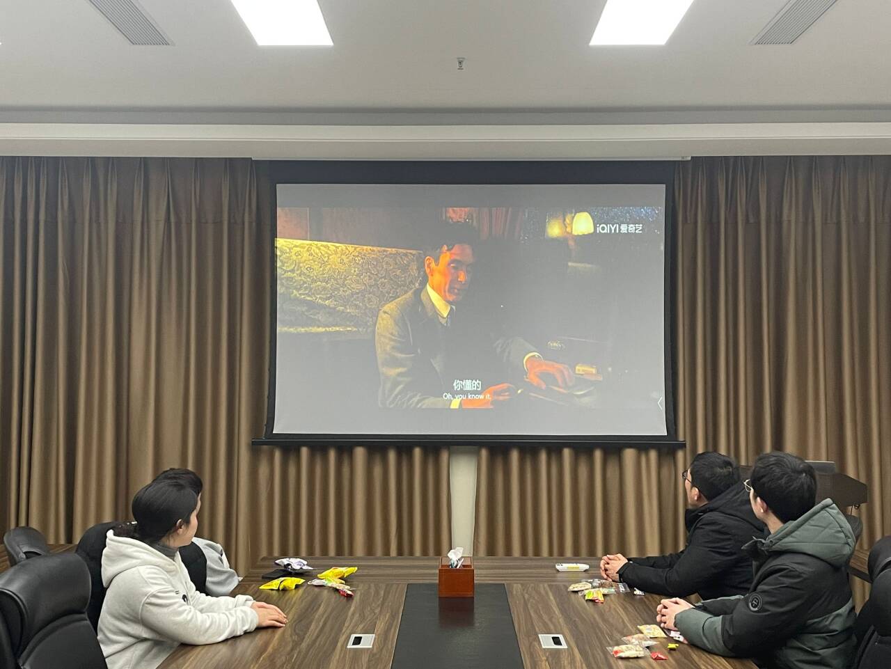 2月11日(正月初二)晚,留校学生在三综B308共同观看电影,现场准备了各种各样的小零食和饮料。大家的情绪被幽默风趣的电影情节牵动,度过了一个轻松愉悦的晚上,冲淡了无法与家人团聚的孤独感。