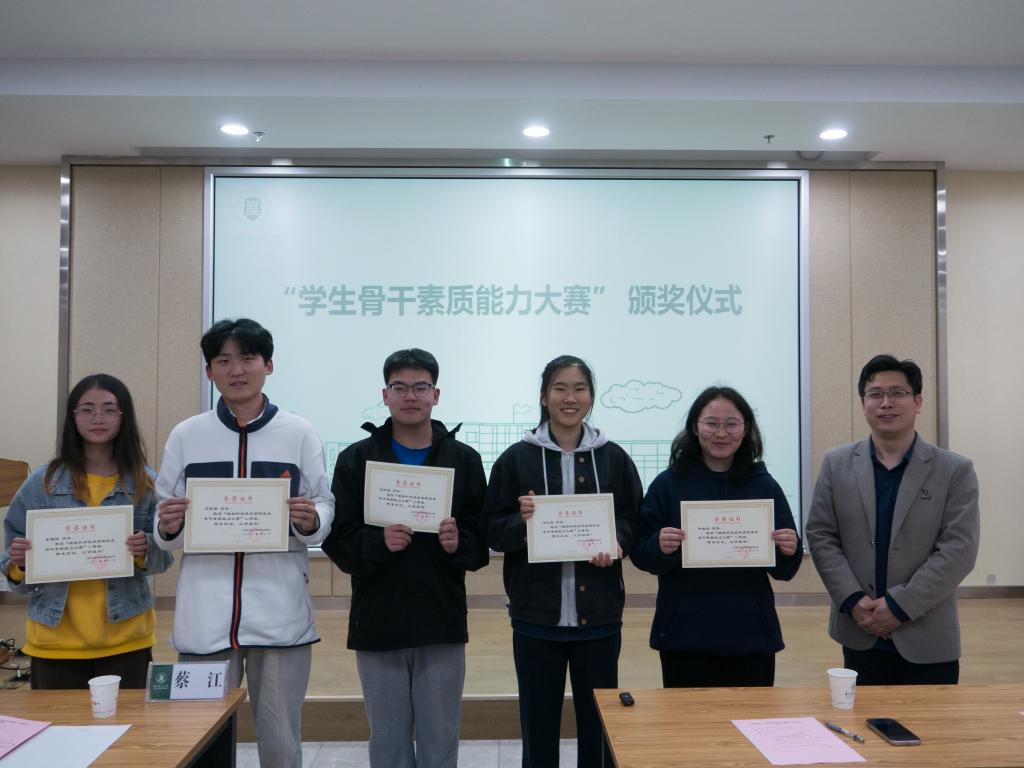 随后,蔡江为“学生骨干素质能力大赛”的获奖同学颁奖。