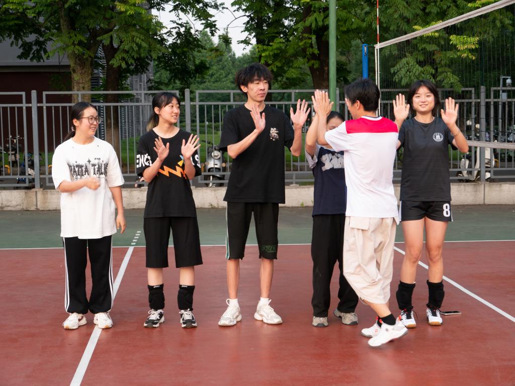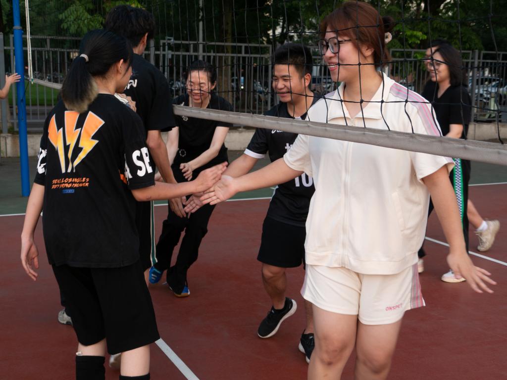 6月9日。随着裁判开场示意,各队伍蓄势待发,决赛开始!强势的发球、灵性的吊球,攻传摧营克阵、防反力挽狂澜,高光频频、精彩接连不断,场下的阵阵欢呼将比赛推向高潮。经过激烈角逐,最终“博园螺蛳粉不用排队”摘得桂冠,“吊我们球不队”“碱基互补配队”分获亚军、季军。