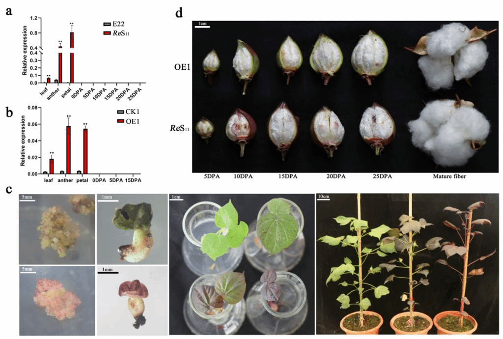 3月15日,国际知名植物学杂志Plant Physiology刊发了我校棉花遗传改良团队题为“Re enhances anthocyanin and proanthocyanidin accumulation to produce red foliated cotton and brown fiber”的研究论文,该研究解析了一个海岛棉和陆地棉种间杂交获得的红色植株突变体的遗传机制,并利用纤维特异启动子将该基因在纤维中特异表达,获得了棕色纤维的棉花。该研究赋能一个普通基因,使其发挥“特殊”功能,开辟了一个创造彩色棉花的新途径。