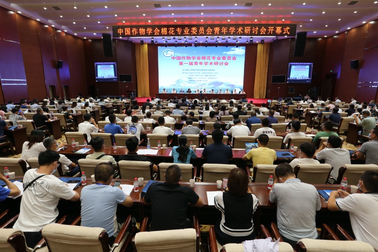 开幕式由棉花专业委员会副会长兼秘书长、中国农业科学院棉花研究所党委副书记宋国立研究员主持。棉花专业委员会会长张献龙教授在开幕式致辞,他强调,本次青年学术研讨会在阿拉尔召开意义重大,我国78%的棉花面积在南疆,青年学者应融入新疆,相互交流,通过多种渠道深入田间地头,发现问题,做有价值的科学研究。他对青年学者提出四点期望:一、希望青年学者重视原创性基础研究;二、希望青年学者重视基础研究的落地问题,基础研究成果转化为应用成果;三、希望青年学者重视学科交叉融合;四、希望青年学者重视从棉花生产中的重大需求出发立题研究,做农民需要的科研,写科学家认同的文章,立志解决棉花卡脖子问题。他结合近年来在新疆多次调研结果提出新疆棉花生产需要解决的5个问题:一、重大应用价值基因的发掘,基因是品种改良的“芯片”,目前可应用的基因十分有限;二、种子萌发过程中盐碱、干旱、低温为害问题,严重影响一播全苗,提出在逆境条件下育种很重要。三、黄萎病的问题,新疆棉花受黄萎病威胁越来越严重,产量损失严重;四、机采棉含杂率高的问题;有些品种叶量大、株型松散、对脱叶剂不敏感,需要育种改进。五、中低产棉田产能提升问题。棉花是“三分种、七分管”,通过栽培管理提升中低棉田的产能、提升棉农的经济效益有较大空间。他也表示,在全国疫情防控的情势下,看到诸多青年科研工作者和青年学子汇集于此,展现了棉花界青年科研工作者立志棉花科研工作、解决新疆产业问题的热情和决心。