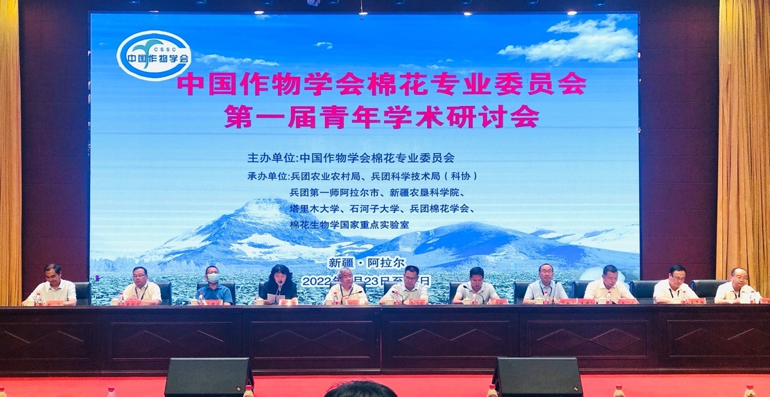 (通讯员 杨细燕)2022724-25日,中国作物学会棉花专业委员会第一届青年学术研讨会在新疆阿拉尔市召开。会议由新疆生产建设兵团农业农村局、兵团科学技术局、兵团第一师阿拉尔市、新疆农垦科学院、塔里木大学、石河子大学、兵团棉花学会、棉花生物学国家重点实验室共同承办。来自全国科研、教学、推广、企业等单位290余代表亲临大会现场,150余人线上观看会议直播。棉花专业委员会会长、棉花团队首席科学家张献龙教授带领棉花团队教师和研究生一行8人赴新疆阿拉尔参会。