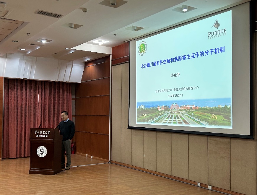 222日下午,美国普渡大学植物与植物病理系终身教授西北农林科技大学-普渡大学联合研究中心主任许金荣教授应邀做客第154期植物保护高端讲坛,在分子楼103报告厅作了题为“谷镰刀菌有性生殖和病原寄主互作的分子机制”的学术报告,系统介绍了该团队近年来在禾谷镰刀菌有性生殖及其与寄主互作方面取得的一系列研究成果