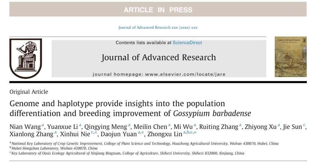 华中农大作物遗传改良全国重点实验室林忠旭教授为the Plant Journal文章的通讯作者,林忠旭教授、袁道军副教授和石河子大学的聂新辉教授为Journal of Advanced Research文章的共同通讯作者,已毕业博士研究生汪念为两篇文章的第一作者,团队带头人张献龙教授参与了两项研究,杜伦大学的Keith Lindsey教授为the Plant Journal文章提供了意见。