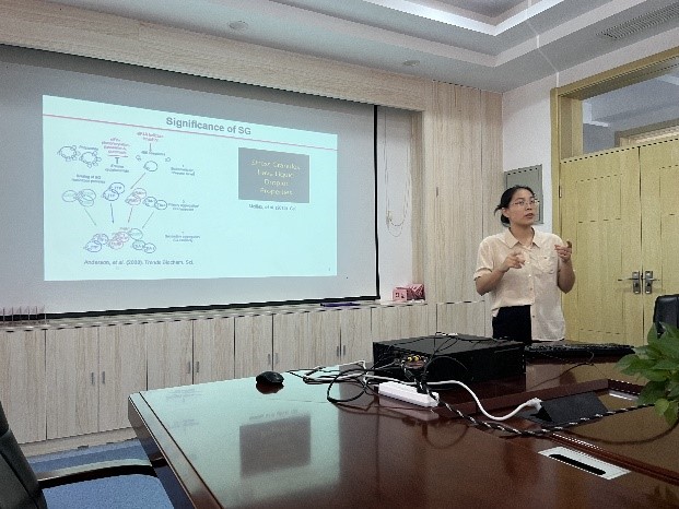 作物纳米生物学团队一行参观了环安所实验室与产学研平台,随后谢周丽副教授和吴洪洪教授分别作了题为《纳米材料通过翻译调控提高作物抗逆》和《作物纳米调节制剂创制及其提高作物耐盐的机理》的报告。市农科院环安所农产品质量与安全研究室副主任王利华就环安所的发展历史、工作方向、研究进展、成果转化经验和合作意向进行了介绍。随后,双方就报告内容、参观体会等开展了座谈交流。最后,市农科院环安所副所长金凤美做总结发言,希望华中农大和市农科院环安所围绕农业生产中的卡脖子问题开展稳定和创新性合作。