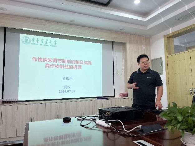 7月5日上午,我校作物纳米生物学团队吴洪洪教授、谢周丽副教授、何莹副教授和顾江江老师等一行前往武汉市农业科学院环境与安全研究所进行交流。市农科院环安所所长蔡定军、副所长金凤美、总支委员姚延兴,农产品质量与安全研究室主任战艺芳、副主任王利华和相关科技人员参加了交流活动。