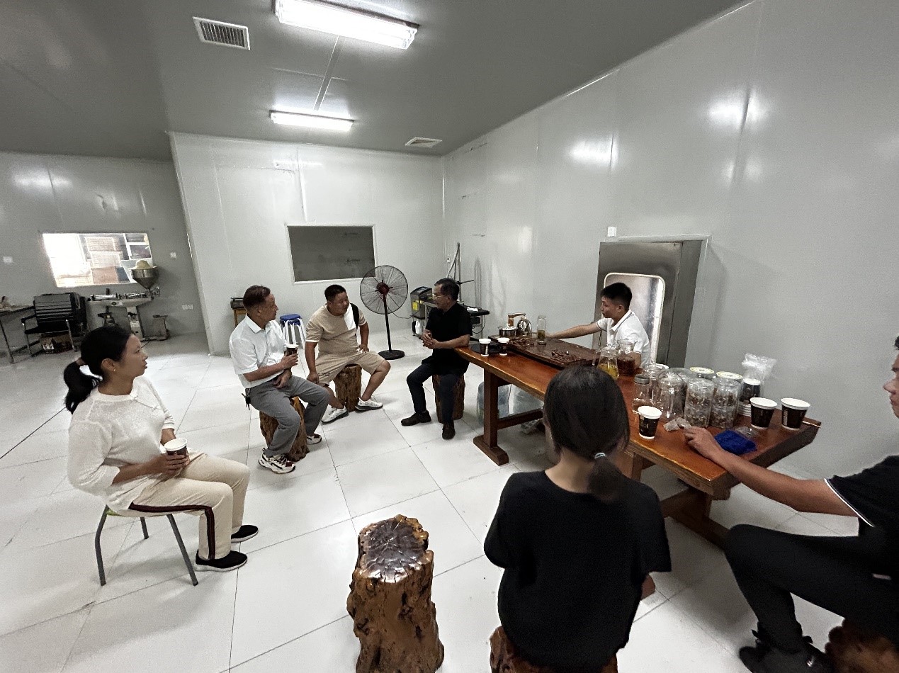 在湖北悟菊堂食药发展有限公司产地加工厂,公司负责人周春林、周文睿向“515”野菊花团队成员逐一介绍了已建立并用于养生茶系列产品深加工的厂房、设备、仓储等硬件设施和养生茶系列产品的生产销售情况,以及正在筹建的用于中药材产地初加工的厂房、晒场、药材专用冷藏库房等情况。随后,“515”野菊花团队成员来到公司利用荒山荒坡建设的野菊花示范种植基地,结合野菊花生长情况,就野菊花营养诊断、施肥、打顶等高效栽培、管理技术和措施进行了现场指导。
