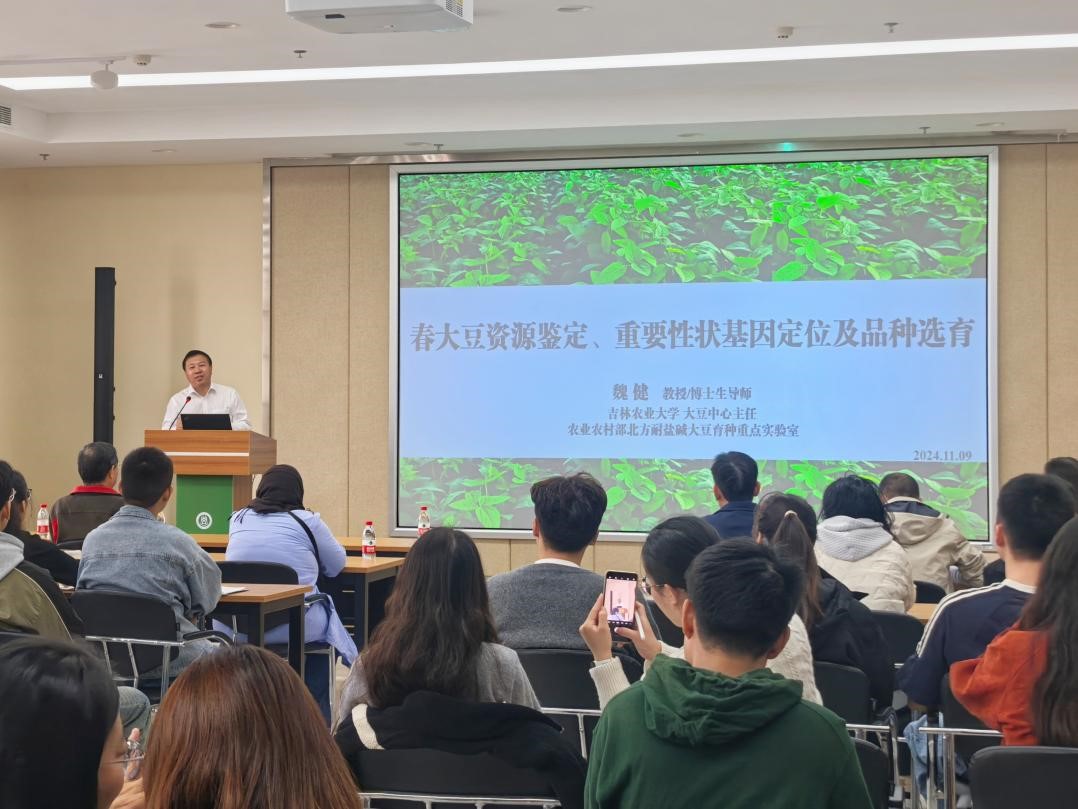 魏健教授介绍了其团队自2013年以来在大豆功能基因的定位与克隆、种质的鉴定与创新、新品种选育及推广方面取得的主要成果。此外,魏健教授还介绍了其团队参与的中非合作项目,特别是中国援助赞比亚农业技术示范中心近年来取得的积极成效。
