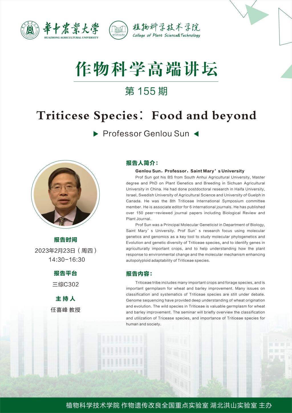 作物科学高端讲坛(Genlou Sun 教授)