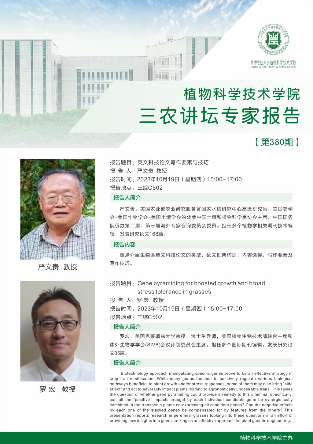 三农讲坛专家报告(严文贵教授、 罗宏教授)