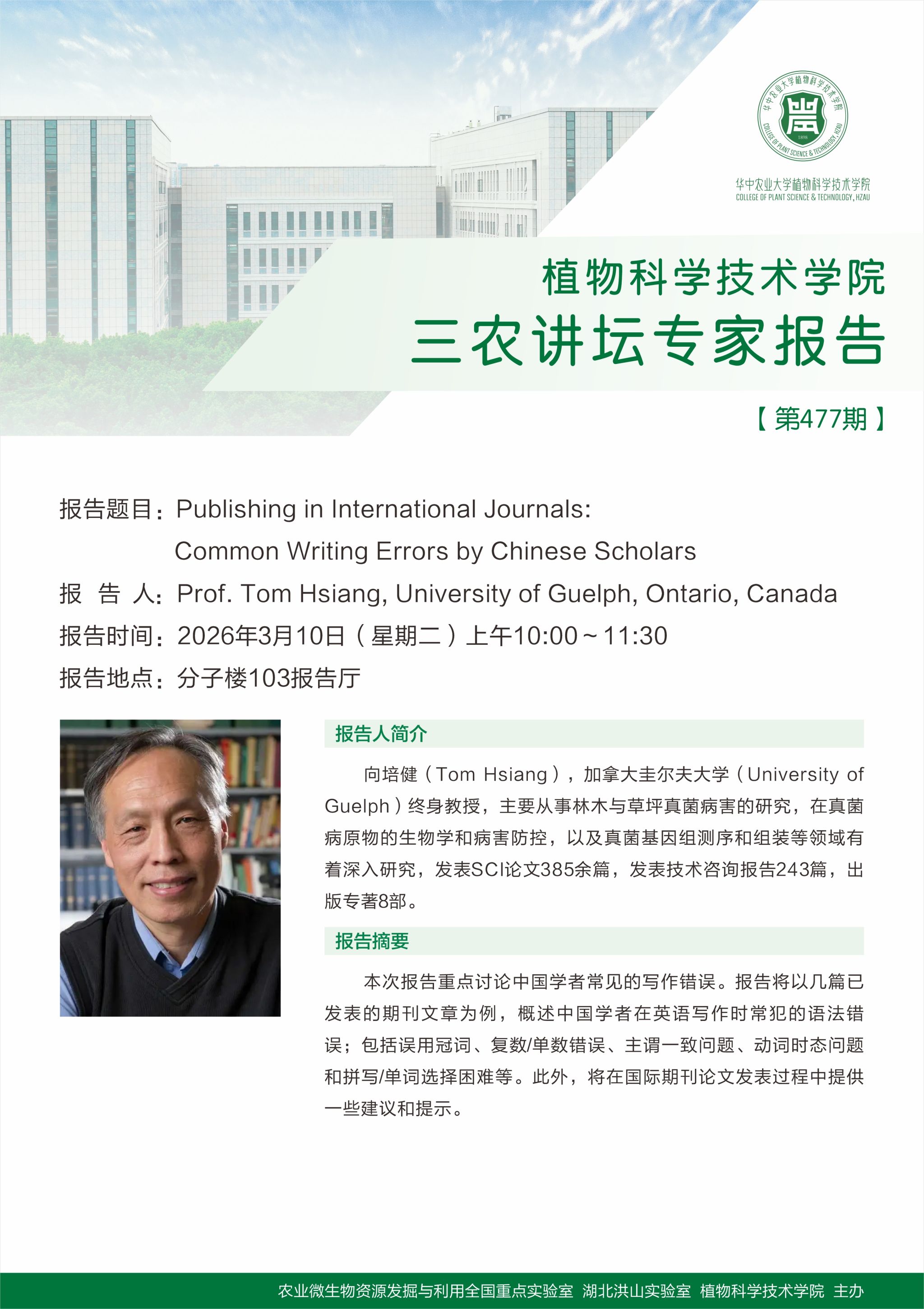 Publishing in International Journals: Common Writing Errors by Chinese Scholars(向培健 教授)