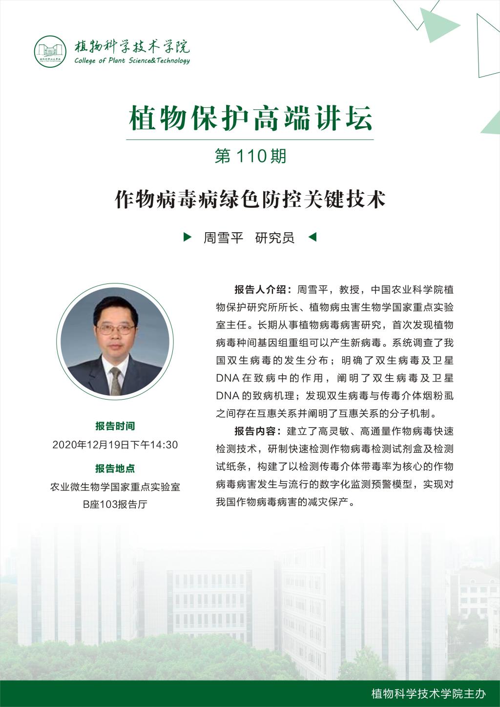 植物保护高端讲坛(周雪平 博士)