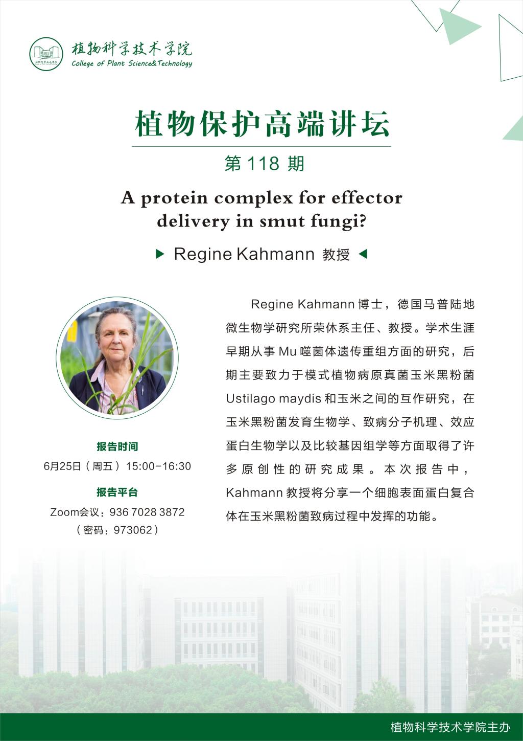 植物保护高端论坛(Regine Kahmann 教授)