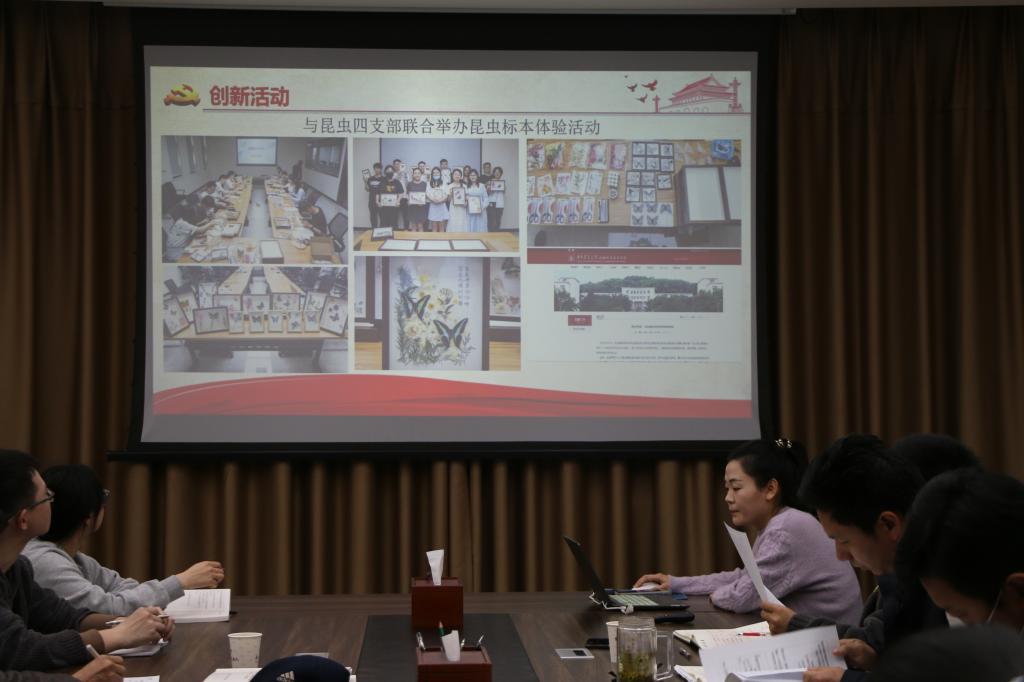 15位党支部书记围绕支部自身建设、亮点工作、查摆问题、总结展望四个方面依次展开汇报。农昆第四党支部为加强党员思想建设,建立了 “支部学习+党小组学习+自我学习”三种形式相结合的学习模式。真菌专业研究生党支部书记周雪婷介绍了他们支部的“五个一”特色活动,即一个合力(师生合力,除旧迎新)、一个融乐(“三全育人”春日活动)、一个联学(青春向党,冬日有我)、一个探寻(追忆历史,探寻足迹)、一个系列(狮山觅菌寻虫,科研姹紫嫣红),使党史学习教育常态化、多样化。