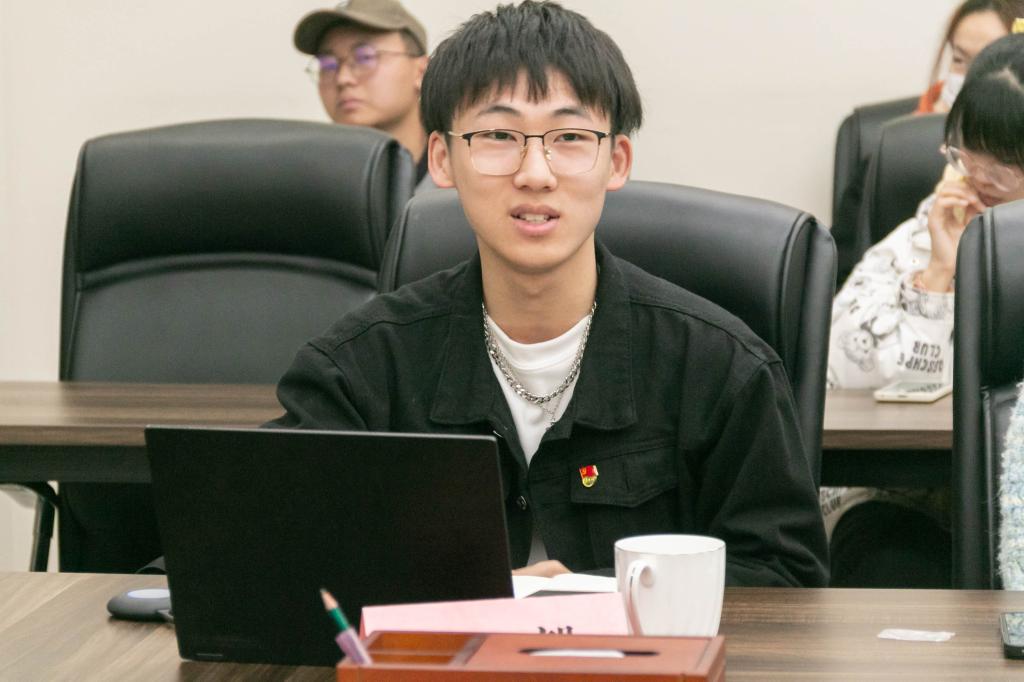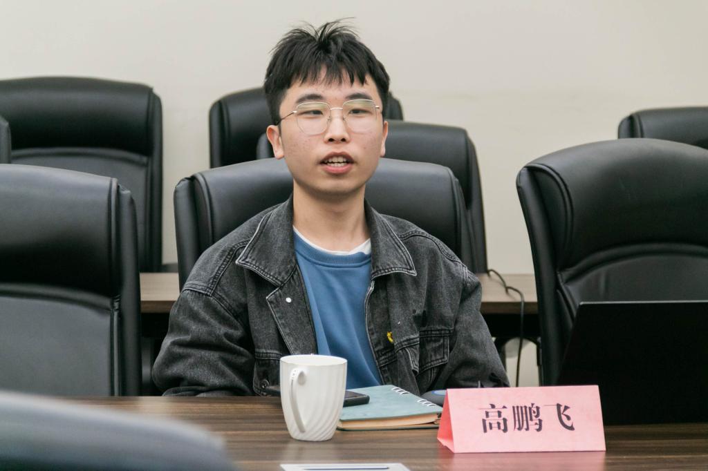 紧接着,高鹏飞向大家展示了他实践经历的成果——优秀的实践报告和满绩的课程成绩。对于社会实践活动,他提出了三点建议:一是工作及时完成;二是组内成员主动承担任务,三是明晰课程要求,要做到有针对性,不能盲目做事而“事倍功半”。