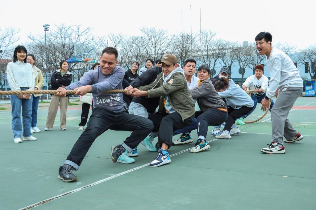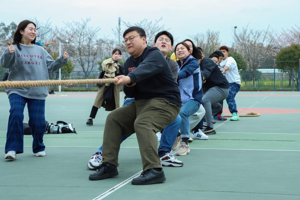 “八人拔河赛”作为参与人数最多、范围最广的项目,一开赛便受到了大家集体关注。来自不同班级、不同课题组的师生们以极高的热情积极参与竞赛,在短时间内就组成了八只队伍。比试还没有开始,硝烟的气息就弥漫在比赛现场,裁判喊着:“还没开始,松点绳。”大家哈哈大笑,气氛融洽。最终,在一片欢呼声中,同学们最关注的辅导员队凭借多年的经验技巧取得最终的胜利。辅导员任伟笑谈到“运动场上的比拼和合作,不仅增强了老师间的默契度,也增进了师生感情,这是在日常工作中收获不到的。”