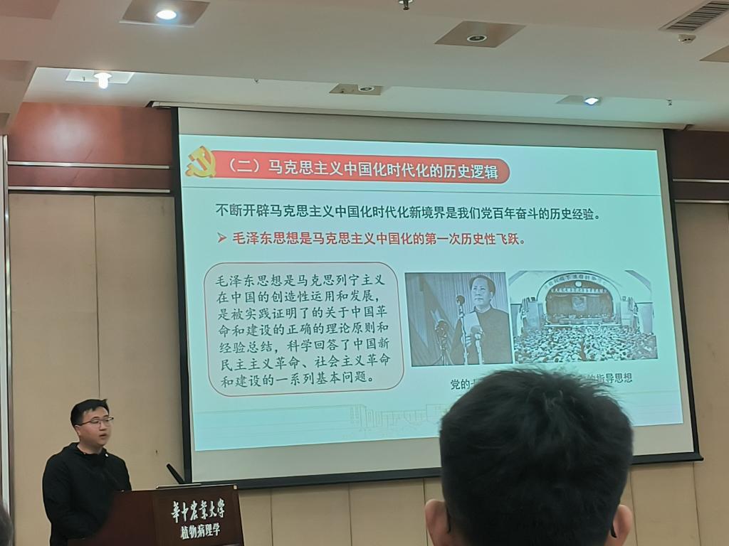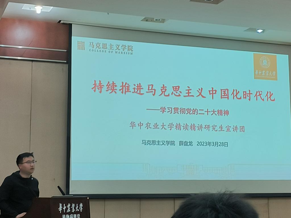 3月28日,植物病理专业研究生第五党支部于分子楼学术报告厅开展党的二十大精神“精读精讲”专题学习暨三月份主题党日活动。英国365集团“精读精讲”研究生宣讲团成员、马克思主义学院薛盘龙同学应邀作题为“持续推进马克思主义中国化时代化学习贯彻党的二十大精神”的学习分享。病理五党支部全体党员参与学习。