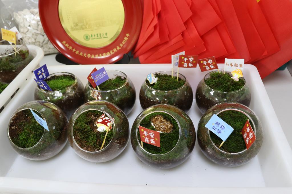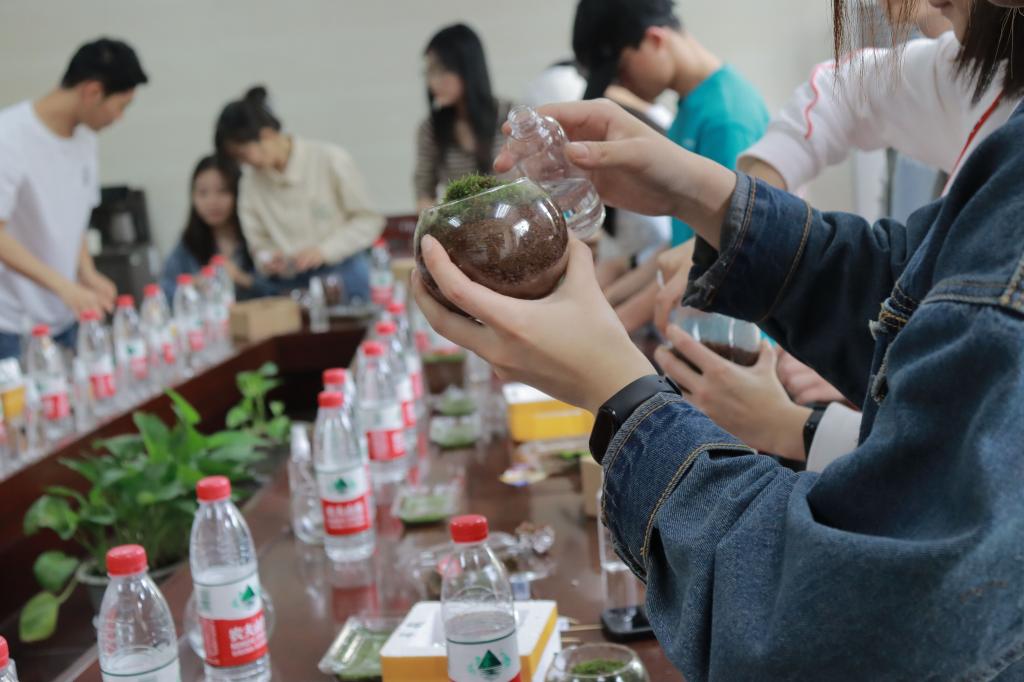 专题学习结束后,真菌党支部开展了蘑菇生态瓶制作活动。火山岩颗粒、营养土、布满菌丝的栽培基质、青苔植物,一层一层填充在容器中,尽可能地模拟自然生态环境。菌类的生长过程是极具神奇和魅力的,真菌党支部带领同学们制作蘑菇生态瓶,悉心培养与观察,走进蘑菇的世界,欣赏着真菌由菌丝慢慢“绽放”出一朵朵千姿百态的蘑菇,再利用造景小配件,将蘑菇与景色相融,打造出独具个人特色的蘑菇生态瓶。