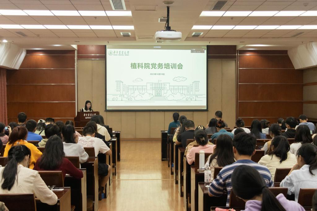 10月19日,植科院2023年学生党支部书记培训在分子楼一楼报告厅举行,党委组织部付兆佳、辅导员任伟、本研学生党支部书记、支委等百余位代表出席本次培训。会议由辅导员宋慈主持。