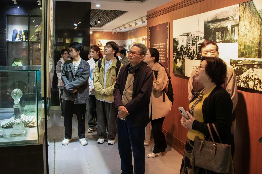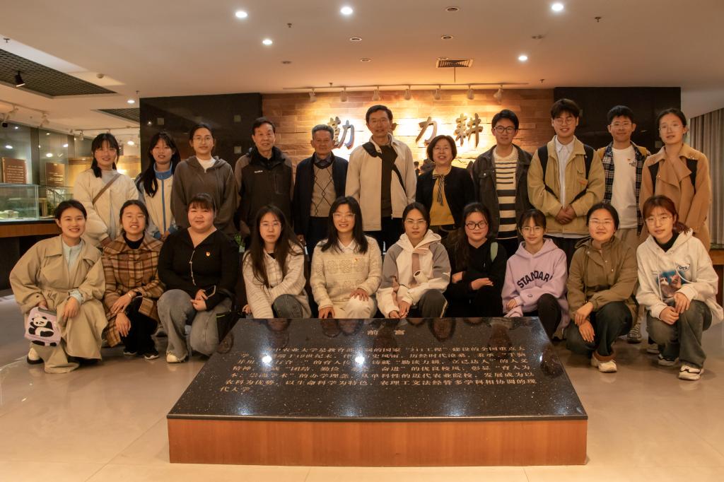 校史陈列馆于2006年5月建成,位于新图书馆一层。校史馆左右门柱上赫然写着“凡民俊秀皆入学,天下大利必归农”,这是张之洞先生躬自题写的楹联,时代发展奔流不息,时至今日这副楹联已然成为华农人“宏农学,扬国光”的精神信条。退休党员教师代表、学生党员与入党积极分子代表由此开始回望学校的悠久历史。