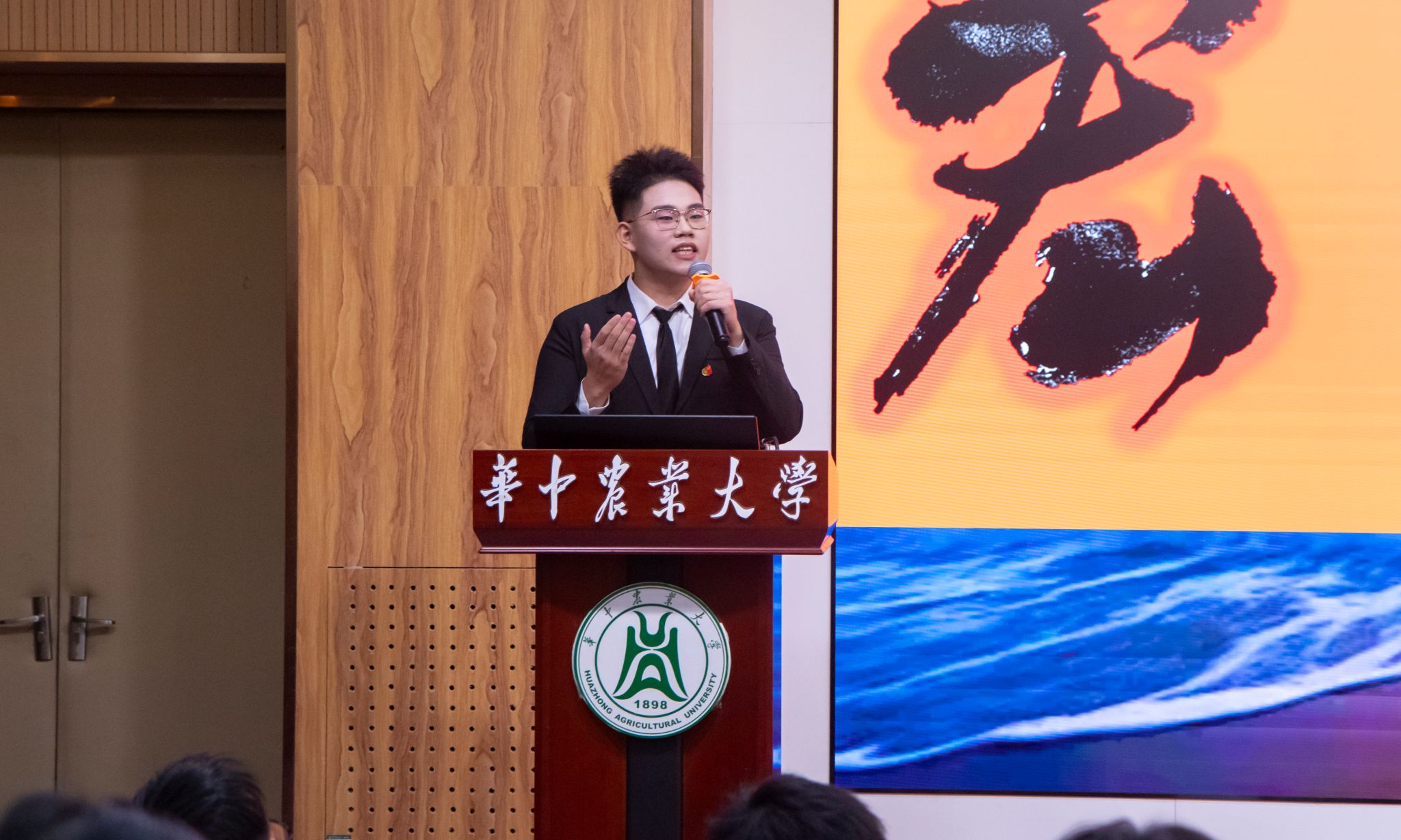 李恩辉通过求索校歌中“宏”的真谛,讲述华农学子斩获全球金奖,傅院士躬耕田野,涉农高校培养新型农林人才的故事,阐述宏才大志、宏儒硕学、宏图伟业的丰富内涵。他强调农业发展绝非一朝一夕,作为农科学子的我们,应坚持扎根土地,勇担千钧重任。