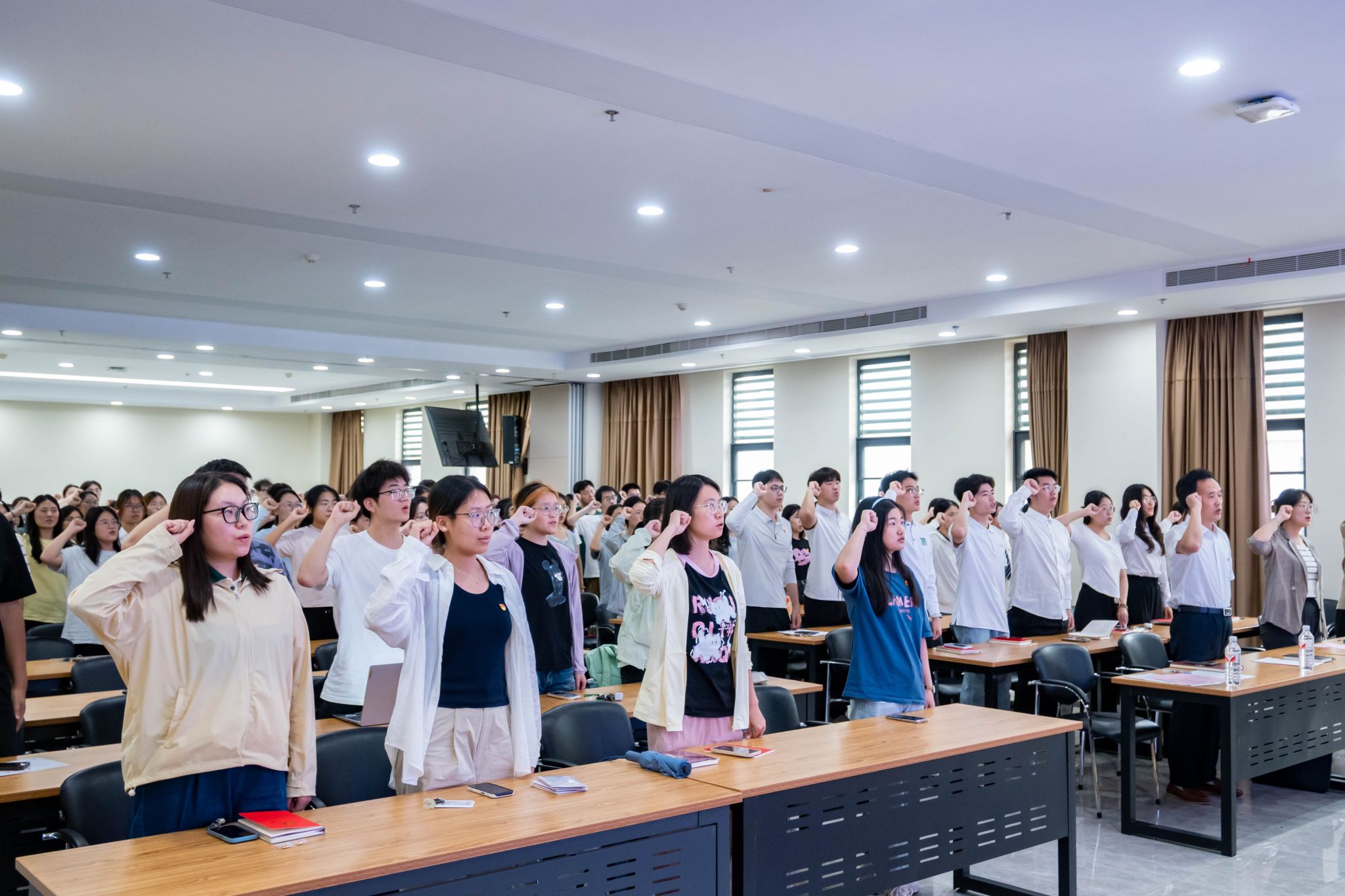任伟、马恬远分别宣读了2025年上半年本研新发展党员名单。紧接着,全体党员在党员代表任伟的带领下庄严宣誓,誓言铿锵有力,饱含着新党员对党忠诚、为共产主义奋斗终身的坚定决心。