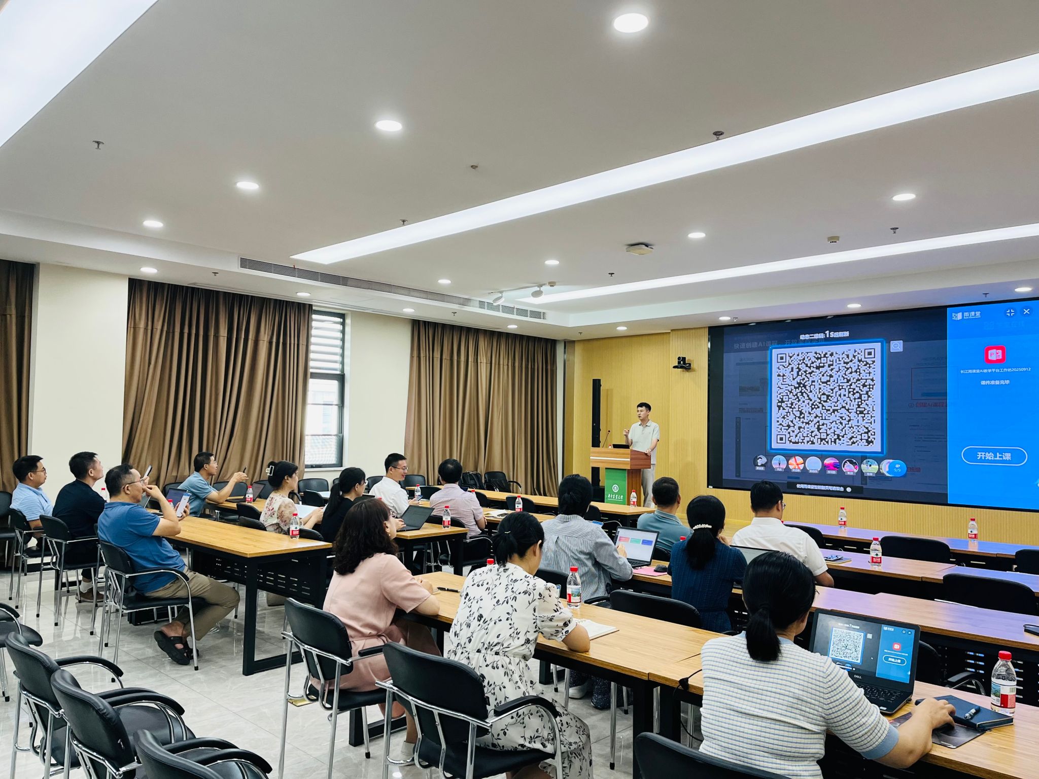 会议开始前,先由清华大学学堂在线技术支持人员莫宴波开展长江雨课堂实操培训。我校长江雨课堂教学平台已全面部署升级AI功能应用,此举旨在引导一批骨干教师率先熟悉和掌握长江雨课堂AI平台的功能,逐步实现所有教师掌握此项应用。