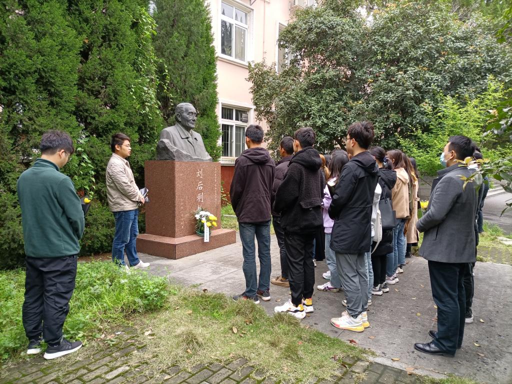 党员师生代表先后瞻仰了刘后利先生、杨新美先生、陈华癸先生铜像并鞠躬行礼,依次敬献菊花。研究生党员葛晓宇博士、陈新博士、李塬浩博士分别讲述了三位学科先贤在立德树人、科学研究方面的故事和成就,勉励大家学习学科先贤,传承先贤精神。