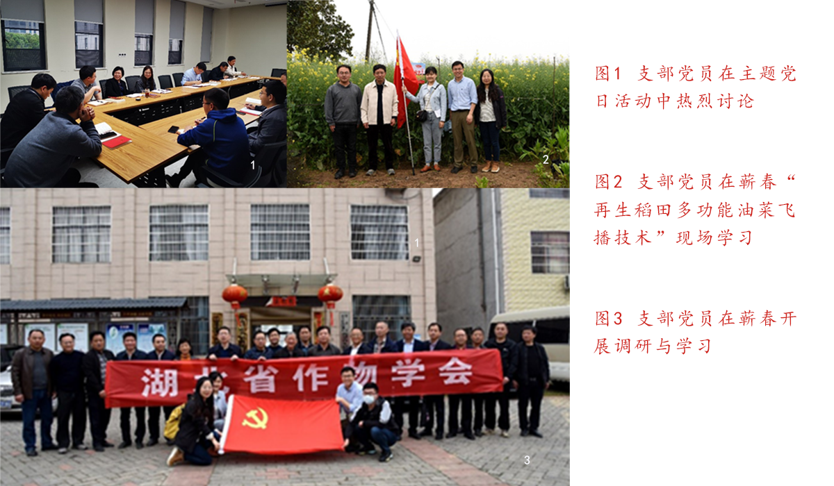 3月30日,支部组织青年党员赴蕲春开展“党旗田野”活动,支部结合“再生稻田多功能油菜飞播技术”现场观摩会,在傅廷栋院士、肖长惜副厅长、彭少兵老师等专家、领导的带领下,青年党员深入生产一线,了解生产实际问题,增知识、长才干。