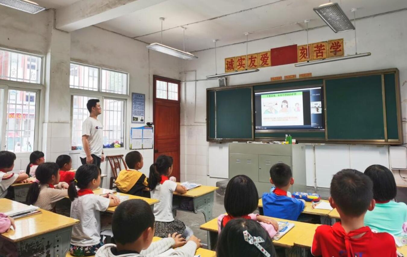 摩峰中心小学的学生在认真听讲