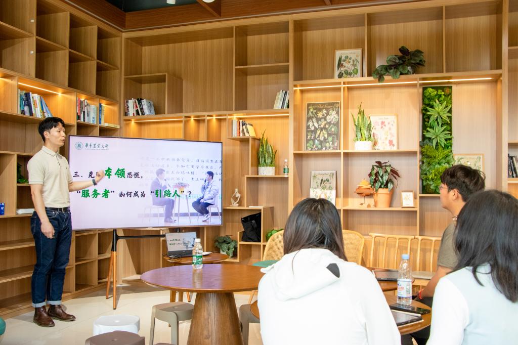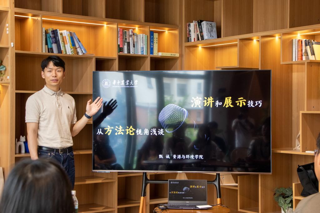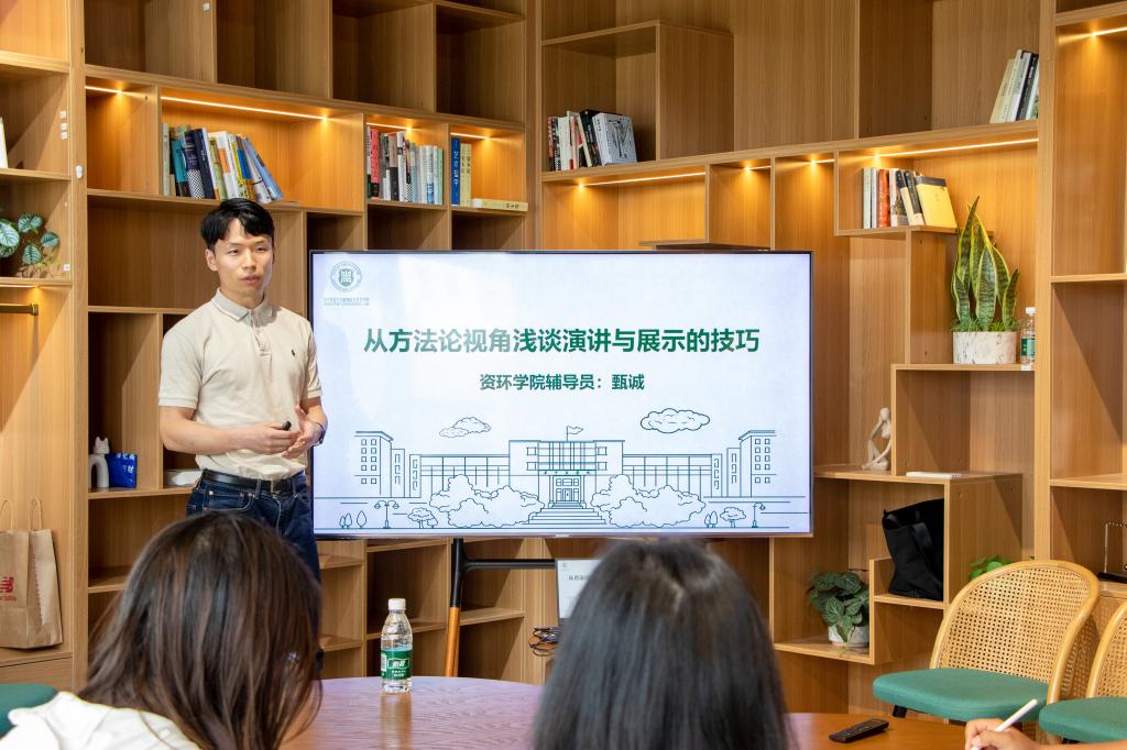 4月27日,植科俊秀训练营第39期培训在“一站式”学生社区交流空间104展开。本次活动邀请资源与环境学院辅导员甄诚老师20余名同学交流分享。