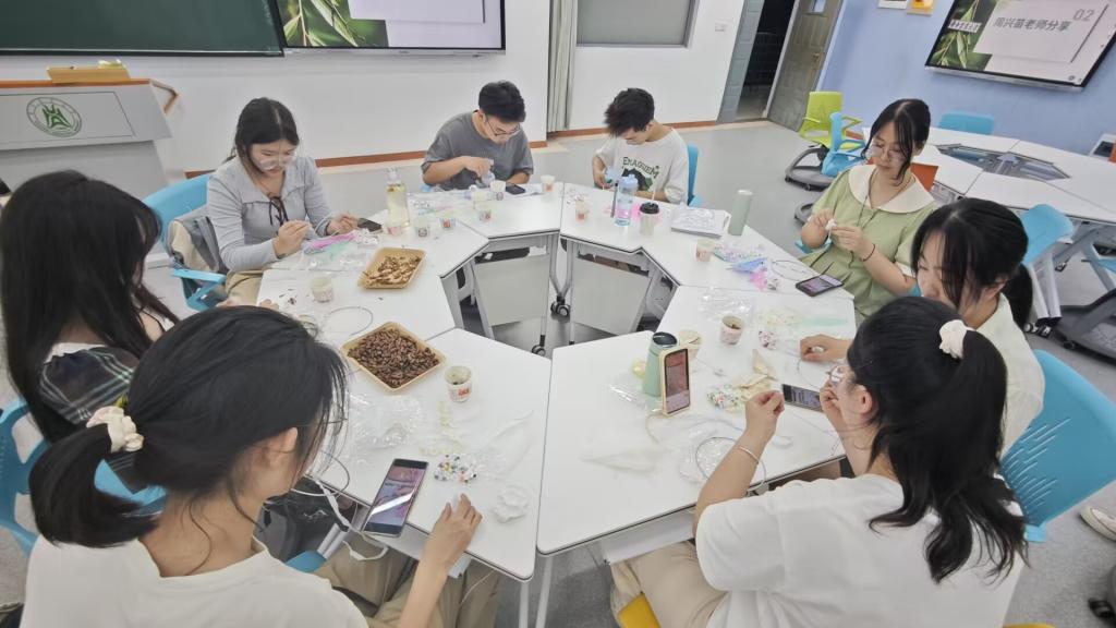 第一次的尝试永远是最难忘的。面对周兴苗准备的各色昆虫美食,同学们有的兴奋期待,有的面露难色,周兴苗帮助同学们克服食用昆虫的心理障碍,鼓励大家通过敢于尝试,品味百味人生植生2307王秋凤同学表示:“不同的昆虫有不同的口感和味道,但都很美味,通过这次活动,打破了我对昆虫的刻板印象,我也不再害怕昆虫了。”同学们在互相分享中交流着昆虫的口感和特性。