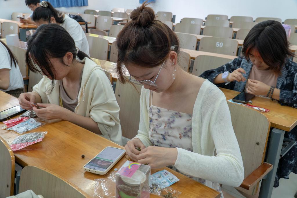 活动当天下午,制作香包的活动在三教B101准时开始,同学们在动手制作的过程中,尽管无法把控缝针拆针、香料份量等细节,但却将自己对制作香包的热情和好奇心通过一针一线缝进香包中,这种对未知事物的探索,何尝不是对生命的阐释,这种将“落花无情却有情”缝进日常生活中的手工制品,更是生命的延续。到了填词游戏环节,同学们通过抽取关键词表达自己对生命的思考,吕官泽同学也在活动中感悟了“生命是积极向上的,是充满热情,作为生命的我们是无法被打败的”的道理。在趣味填词结束后,工作人员为每位同学提供了属于他们的盆栽生命,希望他们通过栽培,更加理解生命的可贵。青春荧幕环节中,同学们前往H7-200活动室观看电影《乔乔兔的异想世界》。影片从一个孩子的视角表现了二战残酷,生命的美好,并呼吁人们守护和平。黄姗同学在观影结束后感慨道:“一个人本性的善良是生命的本色。”