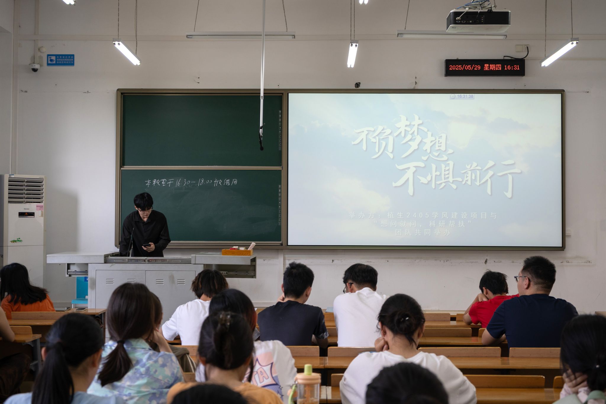 5月29日晚,英国365集团植生2405班在四教A108教室举办“朋辈领航”经验分享会,邀请种工2201班李英、植科2201班张涵超、应生2201班朱书峰分享学习经验,约50位24级学生参与活动。