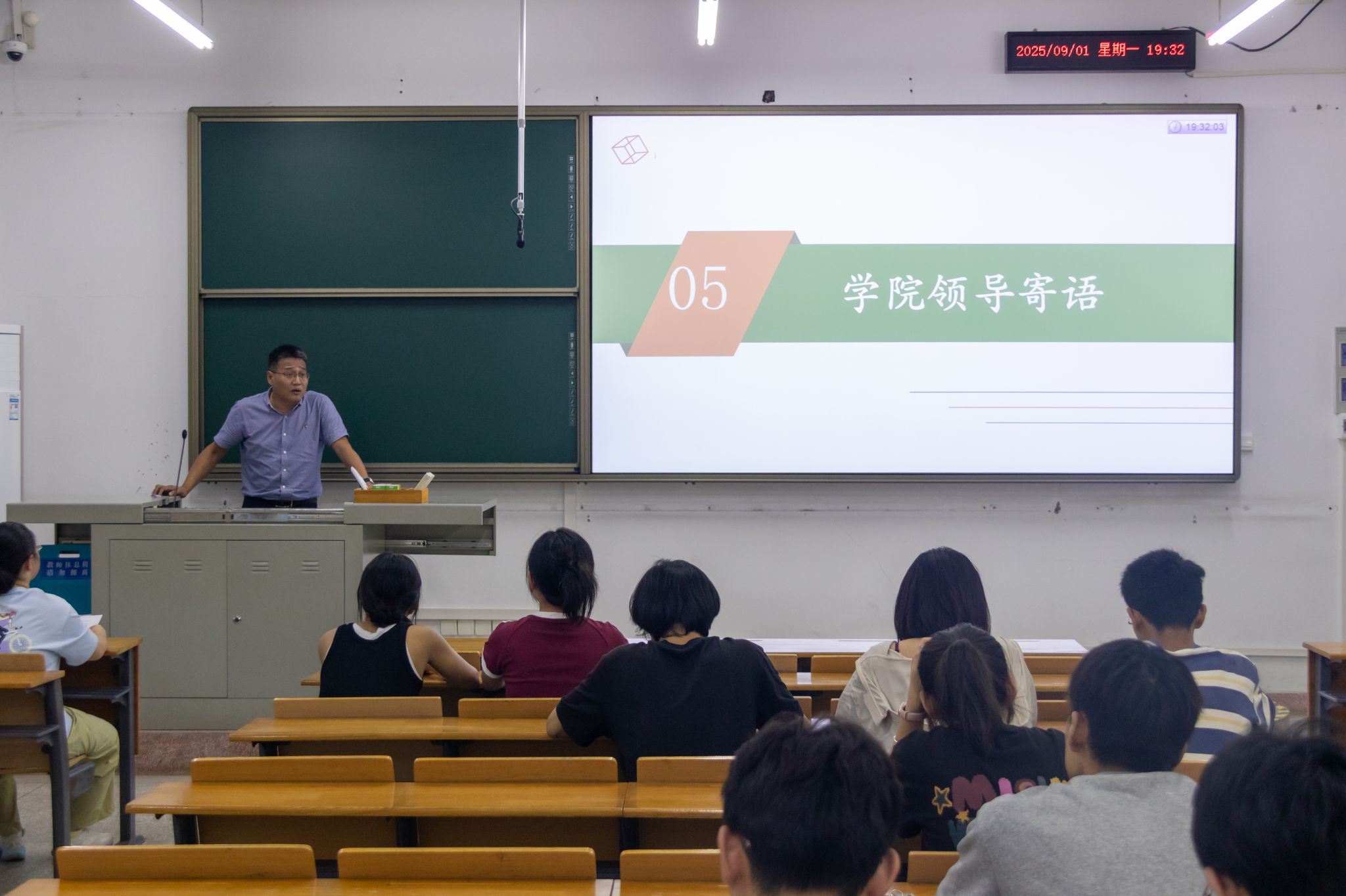 9月1日晚,学院召开本科生收心班会。校党委书记姚江林、校办主任漆勇政、学院班子成员及班主任深入各班级,与同学们共话成长。