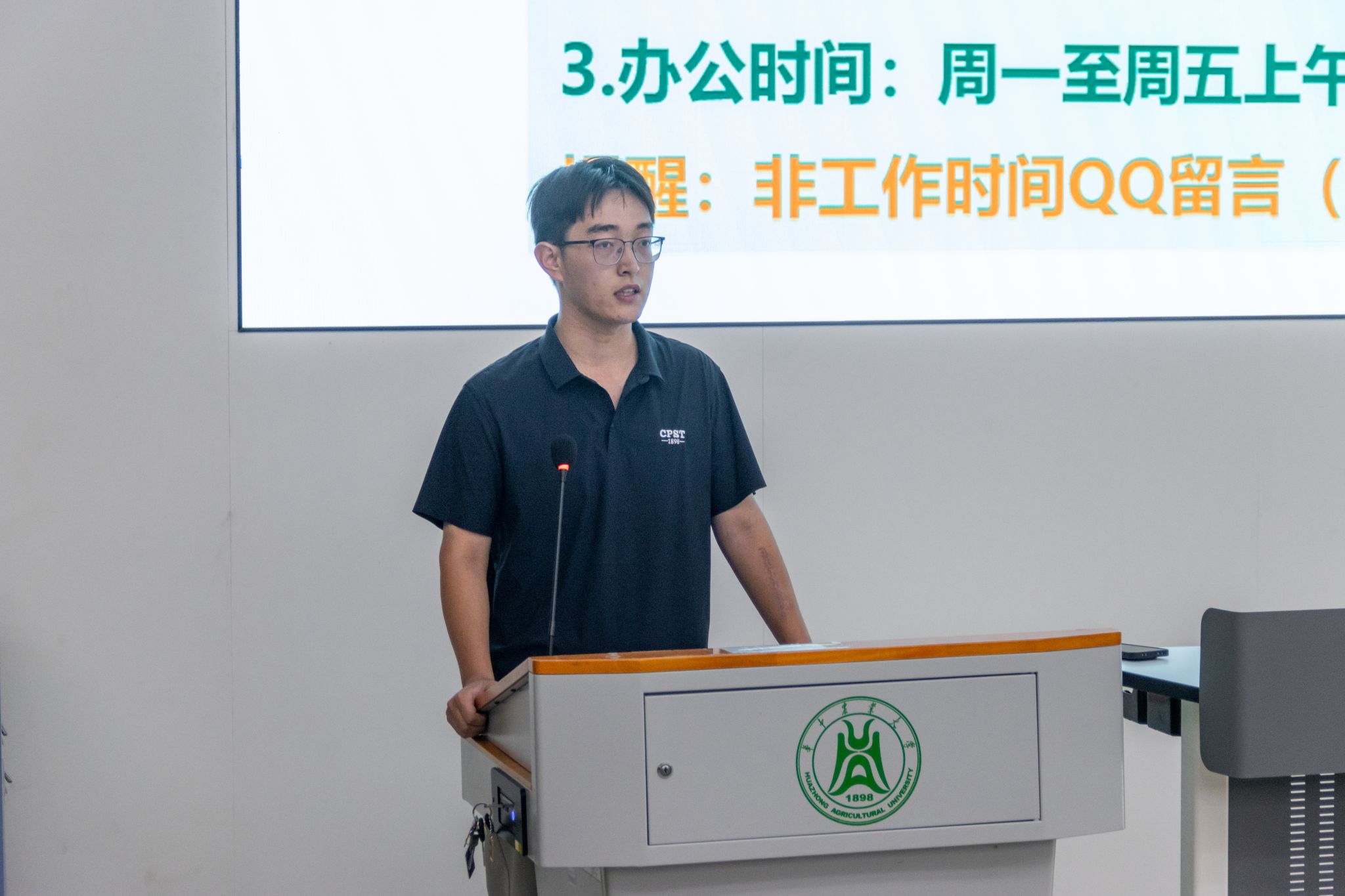 随后,学院辅导员张泽雷向新生介绍了辅导员“时代新人引领者、日常事务管理者、健康成长服务者”的角色。讲解了“QQ留言说明来意—线下见面—紧急事件电话联系”的沟通三步曲,介绍办公地点、电话及时间等信息,并强调了在外住宿、课程请假等流程,以及早锻炼、晚归、寝室安全卫生等日常行为规范,提醒新生守好财产安全、身体健康、心理健康、交通安全等自身安全红线。鼓励大家在大一的生活中善于获取资讯、做好成长规划、学会自我管理,争做卓尔不群的植科人。